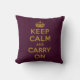Elegant burgundy gold Keep Calm glitter Throw Cushion
