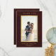Simple classic modern jewel deep burgundy and gold frame minimalist typography wedding thank you card with 2 custom photos on a vintage style antique distressed looking background. +++++++++++ The invite is suitable for an elegant classy formal wedding ceremony and reception.