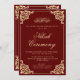Elegant Nikah Ceremony Islamic Muslim Wedding Invitation. A burgundy colour card with a gold baroque vintage border in the corner. There are two luxury script fonts on the front and back card. You can personalise the names, date and address details to make this invite unique for you. You can add text on the back card if needed. Contact designer for any product changes.
