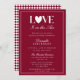 The bold LOVE header with its signature heart detail adds a sweet, celebratory touch without overwhelming the refined layout. Below, flowing script paired with traditional serif lettering creates a beautifully balanced composition that feels elevated, graceful, and warmly welcoming. This minimalist, type-forward design appeals to brides who want something chic and understated yet undeniably stylish for their pre-wedding celebration.