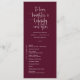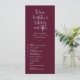 This elegant wedding flat program features an elegant calligraphy and simple sans serif typography font on a burgundy background for a clean minimalist and modern look, which is a beautiful way to inform your guests the order of your wedding ceremony. The simplicity of this design adds a touch of elegance to your wedding. It works well with many wedding themes and definitely a great addition to your wedding stationery. Just customise the names and wording in a few easy steps and personalise the QR Code and hashtag to give your program a nice personal touch.