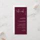 Check out this elegant modern dinner menu with thank you for your wedding or party event! This menu card features beautiful calligraphy and a clean and simple block sans serif typography font script on a burgundy background. The simplicity and clean design of this menu works well with all wedding themes and definitely a great addition to your wedding and/or party event needs. You just customise and personalise the menu on the front. On the back, you enter in the newlywed/couple's names with thank you message for a personal touch from the newlyweds or hosts.
