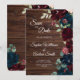Elegant Burgundy & Navy Blue Flowers Wood Save The Date
