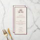 Create your own custom wedding menu cards in a luxurious old money style. Add your wedding food menu in elegant, timeless typography featured here in burgundy and cream color design.