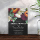 This elegant dark moody jewel tone burgundy, wine, orange, and blush floral bridal shower invitation features feature a rich set of flower graphics, including roses, ranunculus, dahlias, snapdragons, and other flowers in burgundy, orange, blush, and white on a black background, and elegant hand lettered script calligraphy. Easy to personalise with your own information, and the background colour is also customisable. These cards are perfect for the bride planning a boho wedding, garden wedding, vintage wedding, romantic wedding, floral wedding, or for any bride who loves jewel tones and flowers. Easy to personalise with your own information, and the background colour is also customisable. Design by T.K. Goforth.