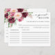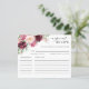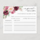 Elegant Bridal Shower recipe card featuring beautiful watercolor floral detail in a blend of burgundy, pink, blush, berry and mauve hues and modern hand written calligraphy details. Design coordinating our "Romance Floral" bridal shower invitations. Ability to customise text sections as you like. Part of our "Romance Floral" collection with a variety of coordinating products available, including matching recipe request card. Visit the complete collection with this link: https://www.zazzle.com/collections/119632839578818651