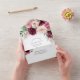 Elegant All- in- One tri- fold wedding invitation in Spanish with perforated RSVP postcard. Same design also available in English. Design with gorgeous watercolor floral cascading down encasing your wedding details in a beautiful blend of burgundy, blush, pink, dusty rose, mauve, berry and beige hues hues. Modern hand written calligraphy elements. Environmentally friendly, as there is no need for extra insert cards, RSVP cards or even envelopes, this invitation has it all! Ability to add both Wedding Ceremony and Reception details, as well as RSVP postcard ready for guests to fill in and mail! Option to order invitations with printed (or hand write later) guest name on the back so you can mail card with no need of any envelope, - OR - if you prefer to use an envelope, simply erase guest name and address characters from text boxes to remove, or add a quote instead. Attractive design for the elegant, yet practical and eco-friendly couple! Part of our "Romance Floral" collection with a variety of coordinating products available, including mailing accessories and event products.