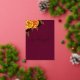 The design is crowned with a vibrant cluster of detailed marigolds and coordinating dark floral illustrations in the top corner.