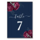 Elegant Burgundy Red Navy Blue Floral Peonies Table Number