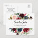 Elegant Burgundy Red Navy Floral Save The Date Postcard