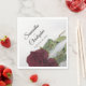 These beautiful wedding napkins will add style and class to your reception, rehearsal dinner, or other wedding related event. They feature a simple yet elegant and romantic design with a single long-stemmed burgundy, maroon, or wine-red coloured rose reflecting in a pool of water with waves and ripples. Above the rose are the names of the couple and wedding date. The design is rotated by 45 degrees so it appears upright when the napkin is held with the corners down.