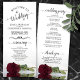 This beautiful wedding program features an elegant design with a single long stemmed burgundy, maroon, or wine red coloured rose lying on its side reflecting in water. The titles are written in fancy script calligraphy, and there is space for your ceremony and wedding party details, as well as a short thank you for your guests. Wonderful way to welcome your friends and family to your wedding celebration.