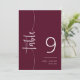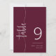 This elegant wedding table number features an elegant calligraphy and simple sans serif typography font for a clean minimalist and modern look in a burgundy background, which is a beautiful way to help your guests find their seat/table. The simplicity of this design adds a touch of elegance to your wedding. It works well with many wedding themes and definitely a great addition to your wedding stationery. Just customise the names. wedding/event date, and table number in a few easy steps and personalise it to give it a nice personal touch.