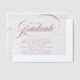 Celebrate your graduate’s achievement with these modern and elegant vellum graduation party invitations, featuring "Graduate" in sophisticated burgundy calligraphy on a sheer vellum background for a timeless and stylish look. Personalise these custom graduation invitations with the graduate’s name, graduation year, school name, and all the essential party details. Perfect for honouring both high school and college graduates, these chic vellum invitations set the stage for a memorable celebration and leave a lasting impression on your guests.