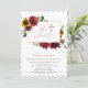Elegant Burgundy Sunflowers Gold Cross Baptism Invitation
