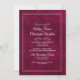 Elevate your celebration with this luxurious velvet-look wedding invitation, designed in a rich deep berry wine tone that feels both romantic and sophisticated. Elegant white script typography pairs beautifully with the textured faux-velvet background, while ornate flourishes and a double-line border add a timeless, formal touch. Perfect for classic, modern, and elegant weddings alike, this invitation provides a stunning introduction to your special day. Add your QR code and additional information on the back of this card.