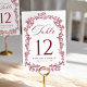 Elegant Burgundy Victorian Floral Wedding Table Number