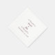 Elegant, classic Wedding napkin features a chic design in timeless burgundy on a transparent background that showcases your choice of colour napkin. This modern simple design provides classic sophistication. Personalise names of couple and event date in elegant lettering and script. These are a perfect accompaniment for any wedding, anniversary, or engagement party! Be sure to see the collection link on this page to view all of the matching items! Please direct questions or custom requests to invitationsuites@gmail.com.