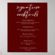 Elegant Burgundy Wedding Signature Cocktails Menu Poster