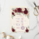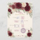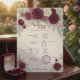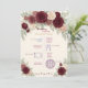 Guide guests seamlessly through your special day with this sophisticated, vintage-inspired itinerary featuring rich botanical art and a soft cream backdrop.This stationery piece is designed with an off-white cream background, establishing a refined typographic hierarchy using classic dark charcoal serif headings and flowing handwritten script accents. The centered text layout is gracefully framed by soft, watercolor-style rose blossoms and leafy foliage in deep red, blush pink, and muted sage green tones. Delicate line-art icons—including champagne glasses, a dining plate, and a globe—clearly map out the day's events to guide the reader's eye down the schedule. This is a flat printed image with a soft watercolor painted effect, not actual raised material or hand-painted canvas.