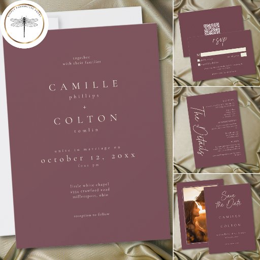 Celebrate your love with this minimalist burgundy wine wedding details enclosure card design. Featuring an elegant, simple look, it's perfect for an elegant autumn ceremony. This earthy, modern look offers a warm and sophisticated feel for your wedding. Created by Simply Farmhouse Press.