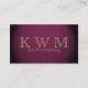 This elegant business card design has a burgundy background with a subtle diamond pattern in a lighter colour. In the centre are your business initials or your monogram in an eye-catching gold with your name or business name just below it. The back has a black background with your contact information in gold. Perfect for any business but especially great for alternative heathcare, decorating, chiropractic services, massage therapy, nail salon, spa, jewellery, cosmetologist, fashion, beauty consultant, personal trainer, or any time you would like an elegant touch. Add your information and it is ready to go!