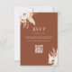 Modern wedding rsvp cards with elegant boho fall floral accents, minimalist typography design on burnt orange terracotta colour.