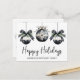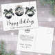 Send warm holiday wishes from your business with this elegant postcard design, perfect for clients, customers, or team members. The front features a minimalist layout with three black and white watercolor ornaments along the left side, accented by evergreen greenery and simple bow details. Your chosen greeting, such as “Happy Holidays,” appears in graceful script, with your company name just below in a clean serif font for a polished, professional touch.