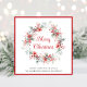 Corporate holiday greeting card for your business or organisation featuring a watercolor wreath of red florals, berries and seasonal greenery. "Merry Christmas" is written in an elegant red script. Personalise your greeting and name in simple modern typography. On the back, personalise an additional message of gratitude, upload your company logo and input your website address to create a scannable QR code.