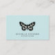 Elegant and modern business cards with pretty black and white butterfly design on a mint green background. Created for aestheticians, spas, cosmetologists, hair stylists, massage therapists and yoga instructors.