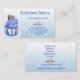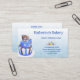 Bakery Business card featuring a colourful blue 3 tier cake and a floral rolling pin. Easily customise with your business details. some graphics delightful-doodles