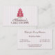A sweet design for a sweet shop - perfect for a bakery, or speciality cake maker. A pretty scarlet cake with icing and confetti sprinkle decorations sits atop a delicate brown cake stand, on a subtly striped background. Deep chocolate brown text you can easily customise with your business name or message.