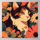 Elegant Calico Cat in Floral Garden Matte Poster