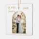 Modern Trendy Calligraphy Script Arch Wedding Photo Christmas Ornament - Gold Text