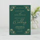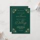 Elegant calligraphy & ArtDeco gold & green wedding Invitation