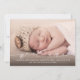 This elegant birth announcement features a large full-bleed photo on the front. White calligraphy script that reads "welcome" overlays the photo. Below the calligraphy lettering, the baby's name, birth stats, and parents' names can be added. The back of the card can be edited -- you can change the neutral grey background colour, add additional photos, and write a custom message.