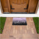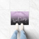 Minimal and modern personalized doormat which features faux purple glitter and black marble texture, elegant handwritten script lettering. A perfect gift for new homeowners or newlyweds.