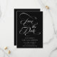 Romantic black and white wedding save the date featuring elegant and romantic swirly calligraphy lettering with a photo on the back. Perfect for any season. For more advanced customisation of this design, please click the BLUE DESIGN TOOL BUTTON above!