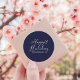 Elegant Calligraphy Blue Holiday Christmas Classic Round Sticker