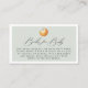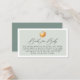 Elegant signature calligraphy "Books for Baby", baby shower book request card. Cards feature, watercolor citrus orange with white blossom accent, pastel silver sage colour frame and sage green colour backing.