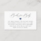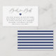 Elegant signature calligraphy "Books for Baby", baby shower book request card. Cards feature navy blue heart accent and matching navy and white stripe pattern backing.