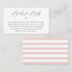Elegant signature calligraphy "Books for Baby", baby shower book request card. Cards feature blush pink heart accent and watercolor blush pink and white stripe pattern backing.