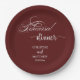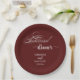 Elegant Calligraphy Burgundy Rehearsal Dinner Paper Plate