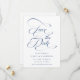 Romantic dusty blue wedding save the date featuring elegant and romantic swirly calligraphy lettering with a photo on the back. Perfect for any season. For more advanced customisation of this design, please click the BLUE DESIGN TOOL BUTTON above!