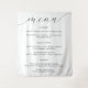 A simple elegant fabric wedding menu banner with the header "menu" in black calligraphy style font. Personalise with your wedding menu details in black serif font.