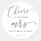 Custom-designed bridal shower stickers featuring "Cheers to the future Mrs." elegant calligraphy design.