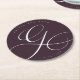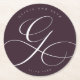 Elegant Calligraphy “G” Plum Wedding Round Paper Coaster