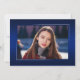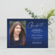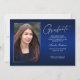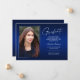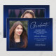 Double sided, two photo modern and elegant graduation announcement cards, featuring design elements of modern text with a unique handwritten style ink script. The graduate's photos on the front & back of the card are accented with a delicate & minimalist gradient boarder (The back photo is perfectly set and ready to be framed). The background is a special gradient design, creating beautifully vibrant shades of blue ranging from sapphire to deep navy blue. The front of the card offers personalised text spaces for information about your graduation or can be reworded to make this card a grad party invitation. Perfect for the high school, college and university grad student.