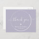 NewParkLane - Sophisticated personalised wedding postcard, with 'Thank You' in elegant script typography /calligraphy with swirls, a tiny white heart, and a dotted round frame, against a lavender background.