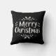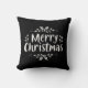 Modern Merry Christmas script throw pillow. The design features the text "Merry Christmas" in white typography with white holly berries and swirl accent elements. Makes for the best personalised gift for yourself, your friends, family members and even neighbours. We have 35+ more Christmas pillows in our collection that you will definitely love. Please check it out and get the best Christmas gift with special wishes for your special people. Merry Christmas!